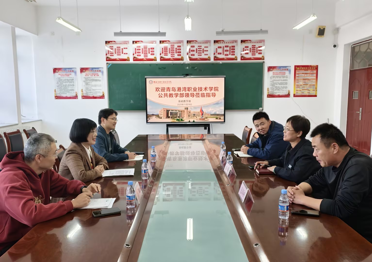 近日,青岛港湾职业技术学院一行三人在公共教学部主任彭翠的带领下,莅临我院开展学生体质健康测试工作专项交流活动。我院基础教学部主任赵桂平及教学科长姜田利和体育教研室高旺热情接待了来访嘉宾,双方围绕学生体质健康测试的组织实施、经验推广、质量提升等核心议题展开深入探讨,共享实践成果,共话发展路径。