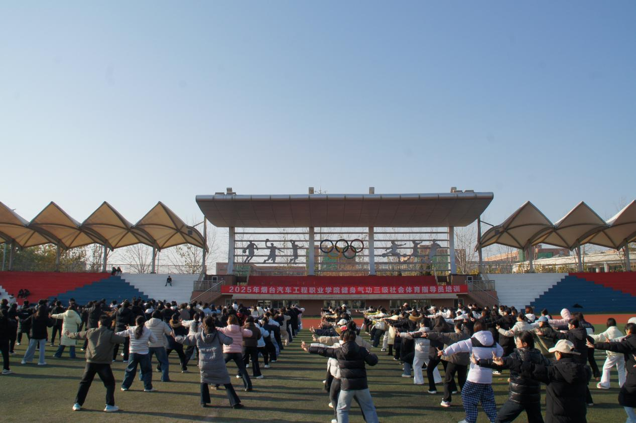 为深入贯彻落实全民健身国家战略,进一步提升全校师生体质健康水平,推动校园体育文化建设走深走实,烟台汽车工程职业学院联合福山区体育中心,于11 月 19 日、11 月 26 日分两阶段开展 “健身气功运动技能推广普及进校园暨三级社会体育指导员” 培训活动。本次培训以健身气功八段锦为核心内容,涵盖理论讲解、动作示范、实操练习及考核认证,吸引了全校 300 名学生及数十名教师积极参与,取得了圆满成效。